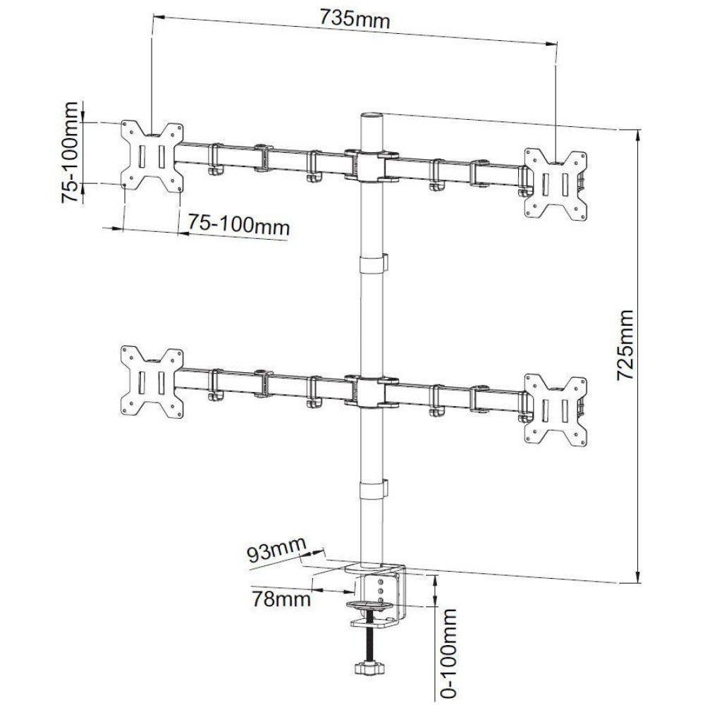 Techly ICA-LCD 382-Q, Abrazadera, 40 kg, 33 cm (13"), 68,6 cm (27"), 100 x 100 mm, Negro