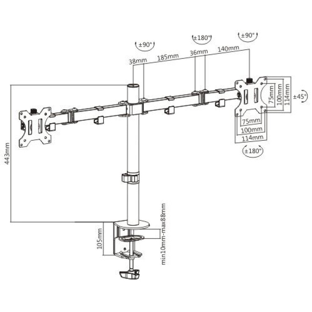 Techly ICA-LCD 582-D, Abrazadera, 16 kg, 33 cm (13"), 81,3 cm (32"), 100 x 100 mm, Negro