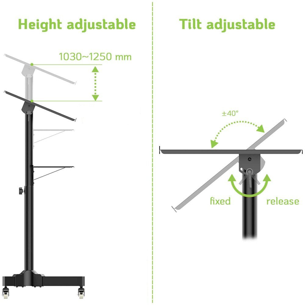 Techly ICA-TB TPM-1BK, Soporte para ordenador portátil, Negro, Metal, 1030 - 1250 mm, 0 - 40°, 600 mm