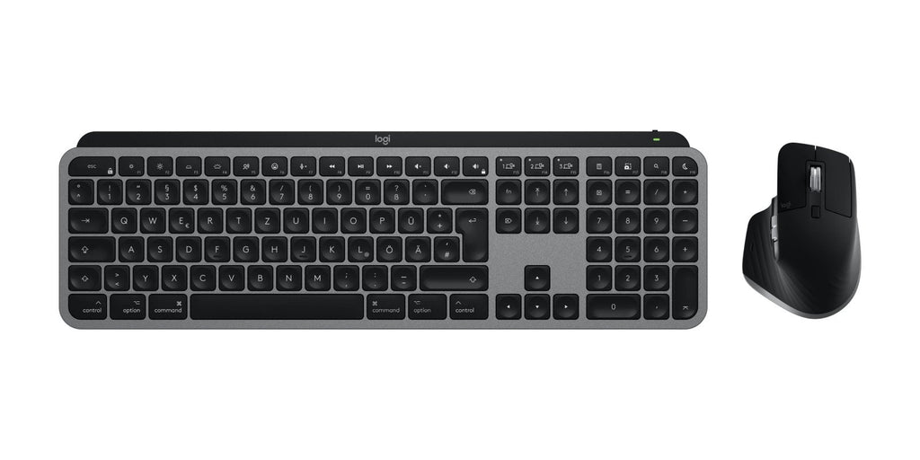 Logitech MX Keys S Combo for Mac teclado Ratón incluido Hogar / Oficina RF Wireless + Bluetooth QWERTZ Alemán Aluminio, Negro