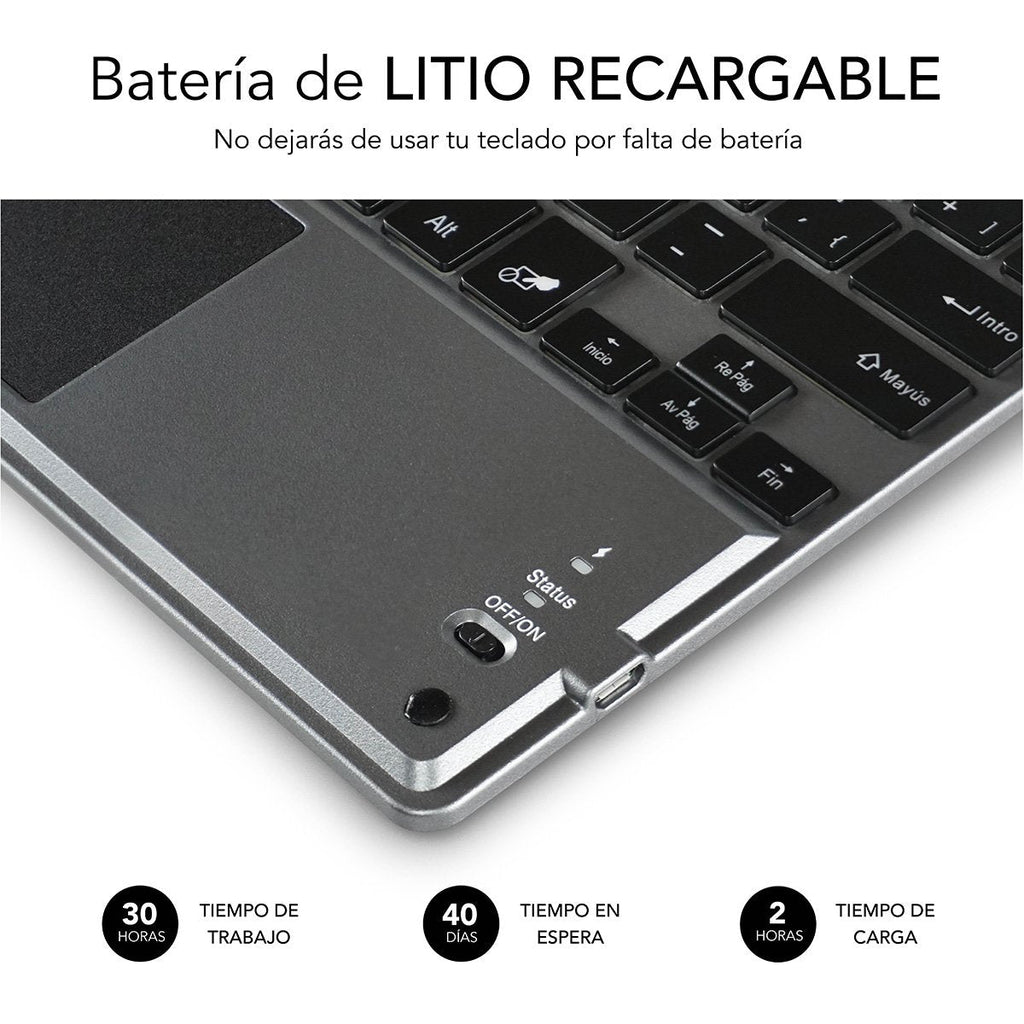 SUBBLIM TECLADO SMART BACKLIT TOUCHPAD BLUETOOTH GREY QWERTY Español Negro, Gris