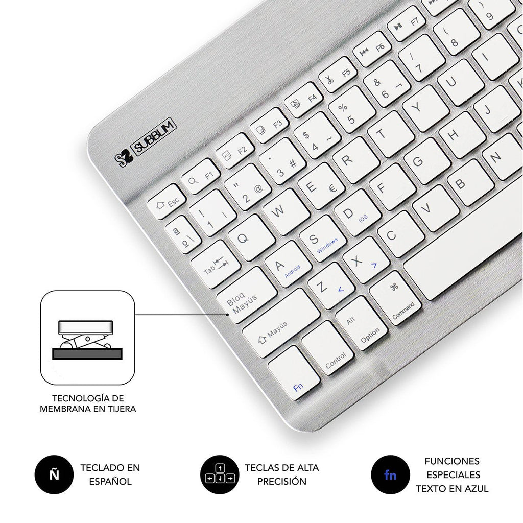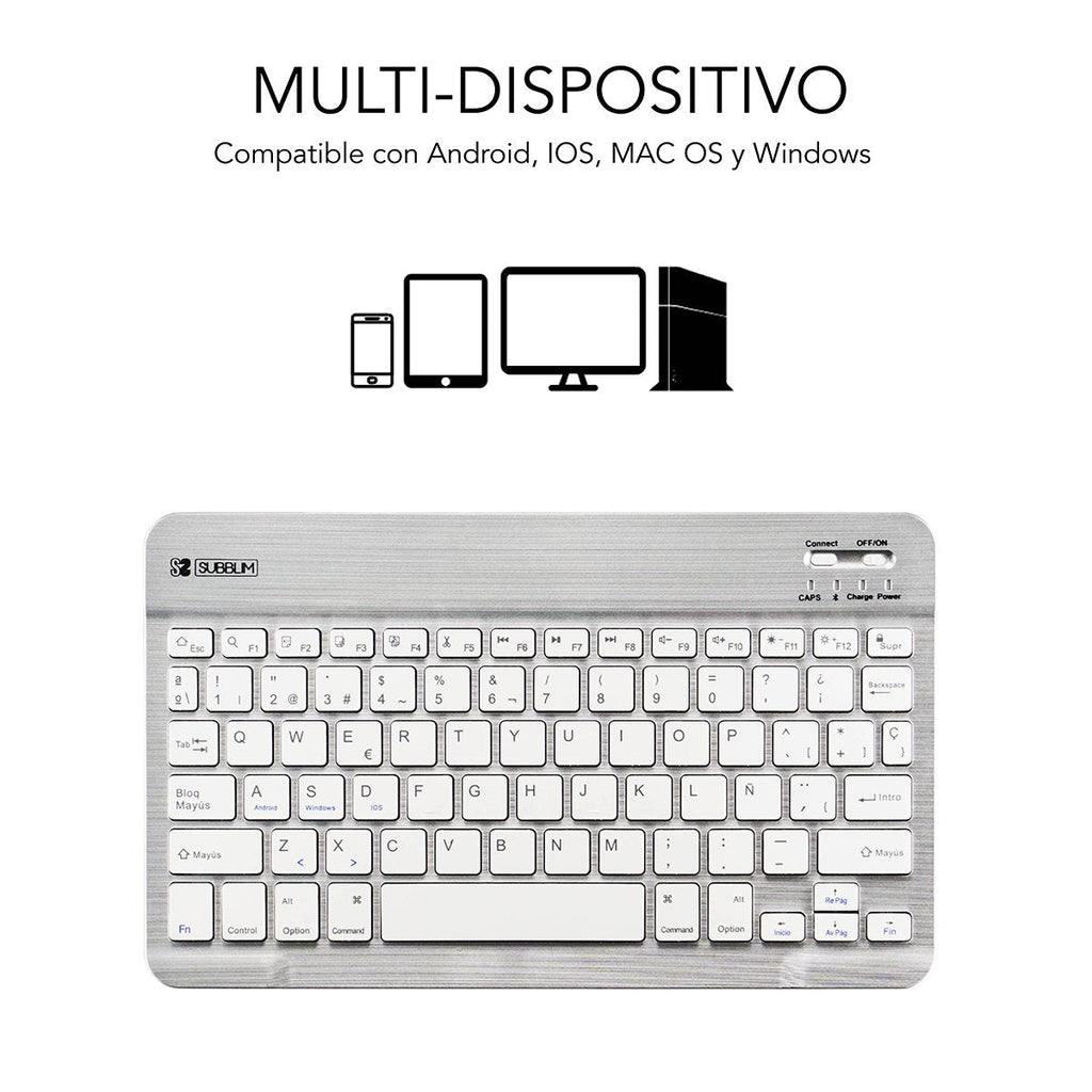 SUBBLIM TECLADO SMART BLUETOOTH SILVER QWERTY Español Plata, Blanco