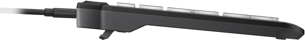 • Ajusta tu espacio de trabajo a tu gusto. Con 12 teclas programables[1], puedes crear tus propios accesos directos o automatizar combinaciones de teclas difíciles para ahorrar tiempo mientras trabajas. Además, con una inclinación de 0 a 6 grados y tres niveles ajustables de brillo LED, la comodidad está al alcance de tus manos.