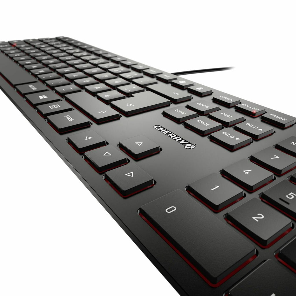 El teclado CHERRY KC 6000 SLIM convence por su preciso mecanismo de tijera, sus medidas compactas y su moderno diseño. El robusto teclado con placa metálica integrada es especialmente adecuado para los escritorios de usuarios que aprecian el componente estético.