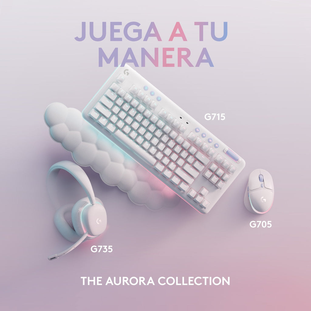 - Gama Aurora: los equipos gaming, mejor juntos; el teclado Logitech G713, los auriculares G735 y el ratón G705 comparten diseño inclusivo y estética; los accesorios para gaming se venden por separado