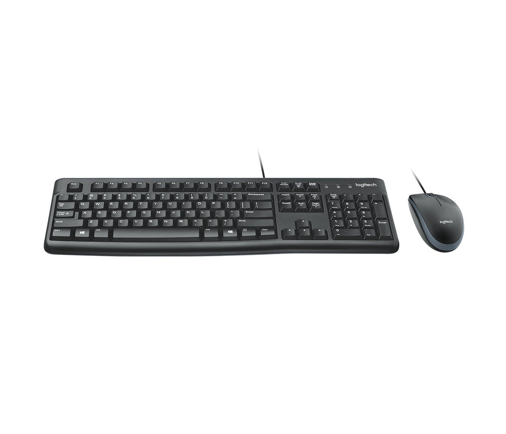 Logitech MK120, Alámbrico, USB, QWERTY, Negro, Ratón incluido