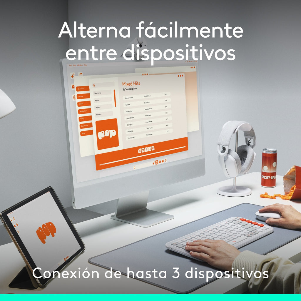 - Alterna fácilmente entre 3 dispositivos: conecta por Bluetooth hasta 3 dispositivos inalámbricos de distintos sistemas operativos (Windows, macOS, iPadOS, iOS, ChromeOS) y alterna entre ellos con solo pulsar el botón Easy-Switch