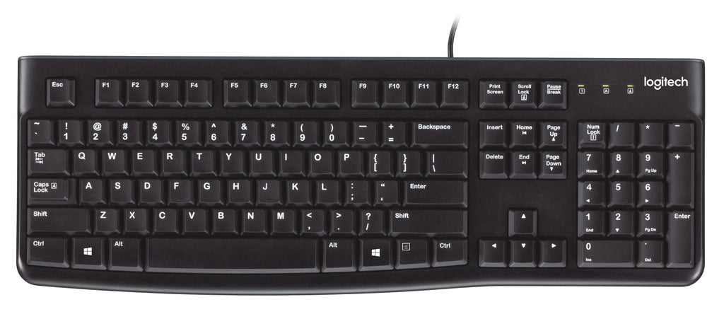 Logitech K120, Completo (100%), Alámbrico, USB, QWERTY, Negro