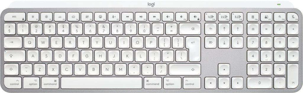 Logitech MX Keys S for Mac, Inalámbrico, RF Wireless + Bluetooth, Switch de tecla de tijera, QWERTY, LED, Aluminio, Blanco