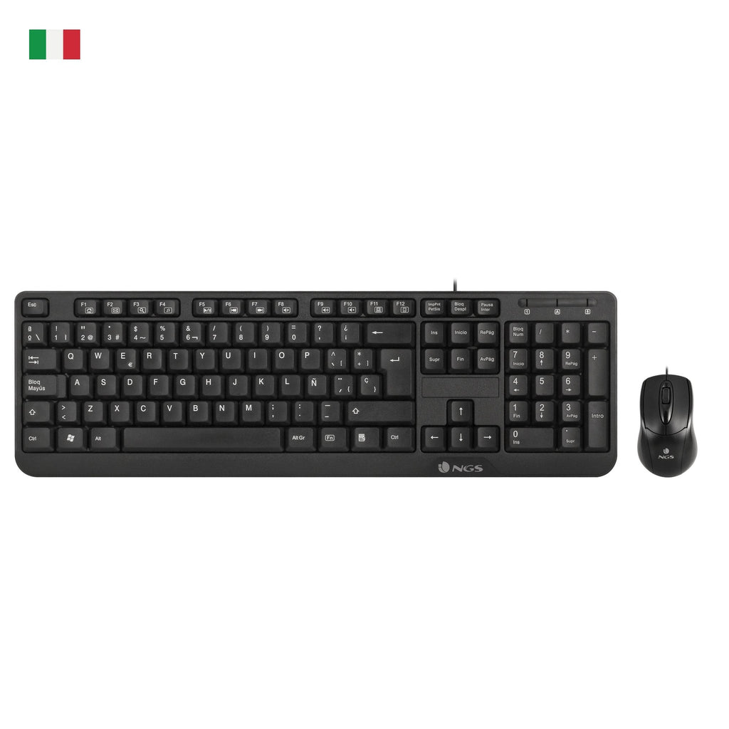 NGS Cocoa Kit, QWERTY, IT teclado Ratón incluido Universal USB Italiano Negro
