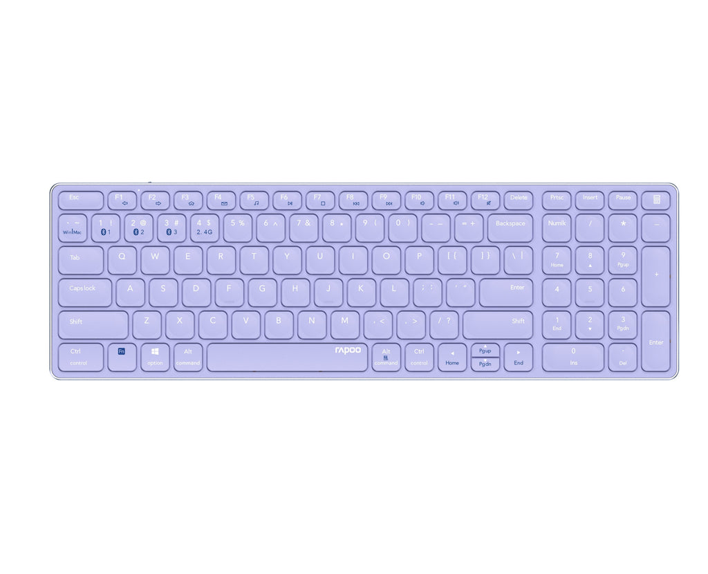 Rapoo E9700M, Completo (100%), Inalámbrico, RF Wireless + Bluetooth, Switch de tecla de tijera, QWERTY, Púrpura