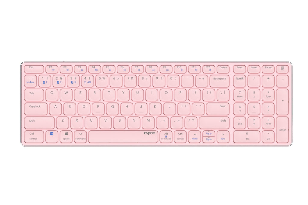 Rapoo E9700M, Completo (100%), Inalámbrico, RF Wireless + Bluetooth, Switch de tecla de tijera, QWERTY, Rosa