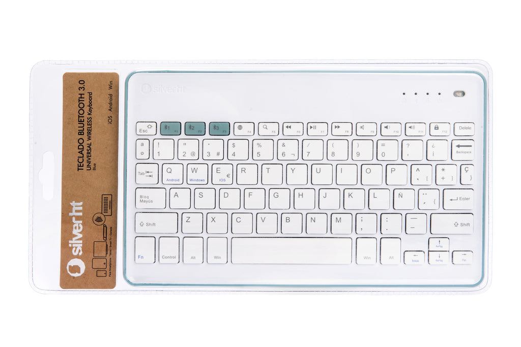 SilverHT 111936640199 teclado para móvil Español Bluetooth Azul, Blanco