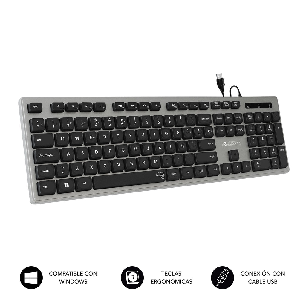 El teclado con cable USB SUBBLIM ERGO, te proporciona una precisa y confortable escritura gracias a su ergonomía en las teclas cóncavas. Además, tu escritorio será mucho más elegante por su combinación de colores que harán juego con el resto de elementos creando un espacio de trabajo ideal. Todo ello sin ruidos incómodos gracias a la tecnología Silent Keys utilizada en las teclas.