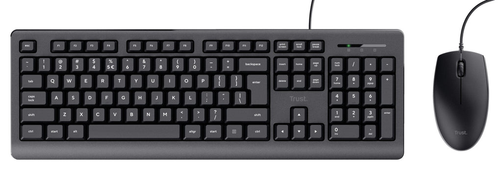 Trust TKM-250, Completo (100%), Alámbrico, USB, Negro, Ratón incluido