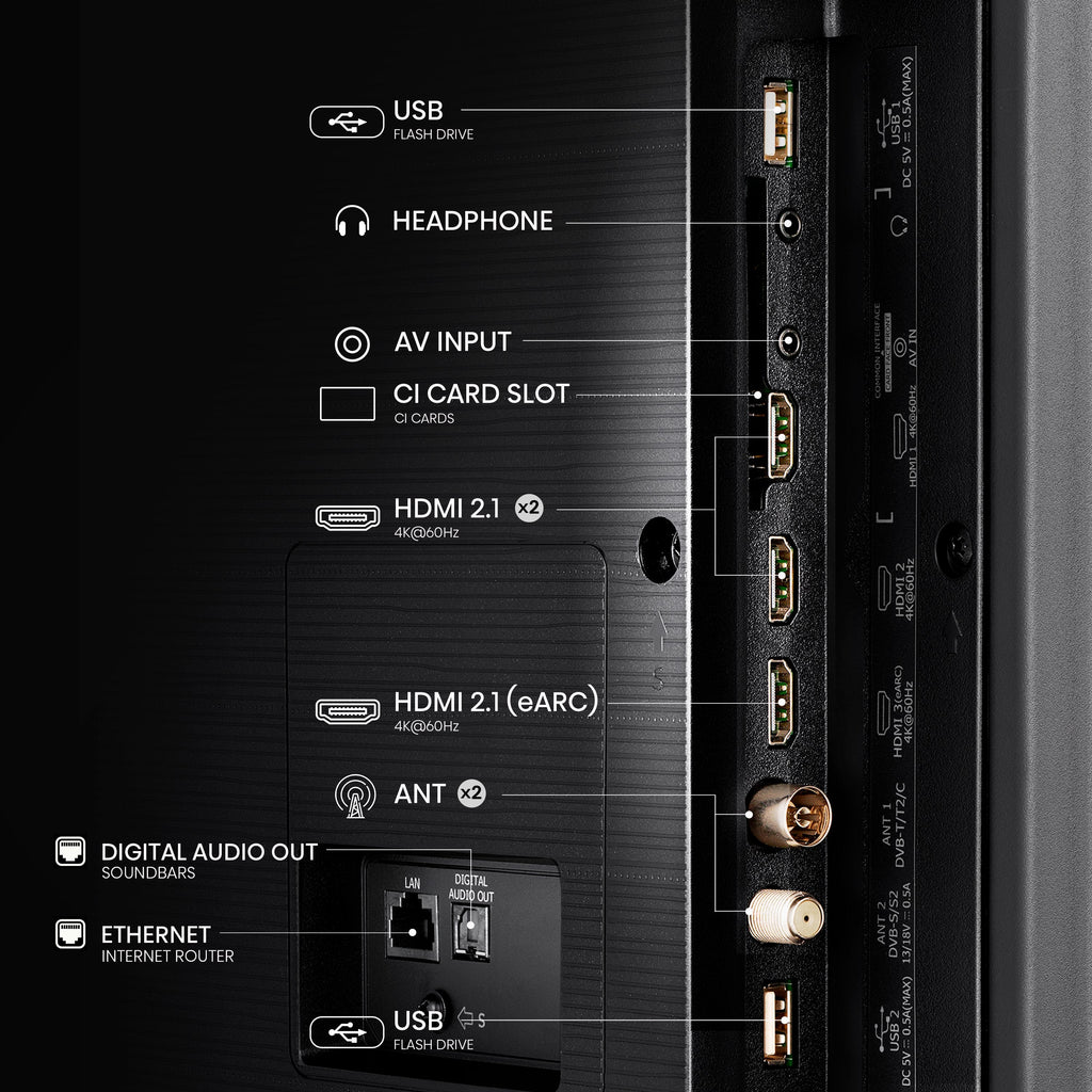 - Prestaciones de juego: Modo automático de baja latencia (ALLMˌ Auto Low Latency Mode), Frecuencia de actualización variable (VRRˌ Variable Refresh Rate)