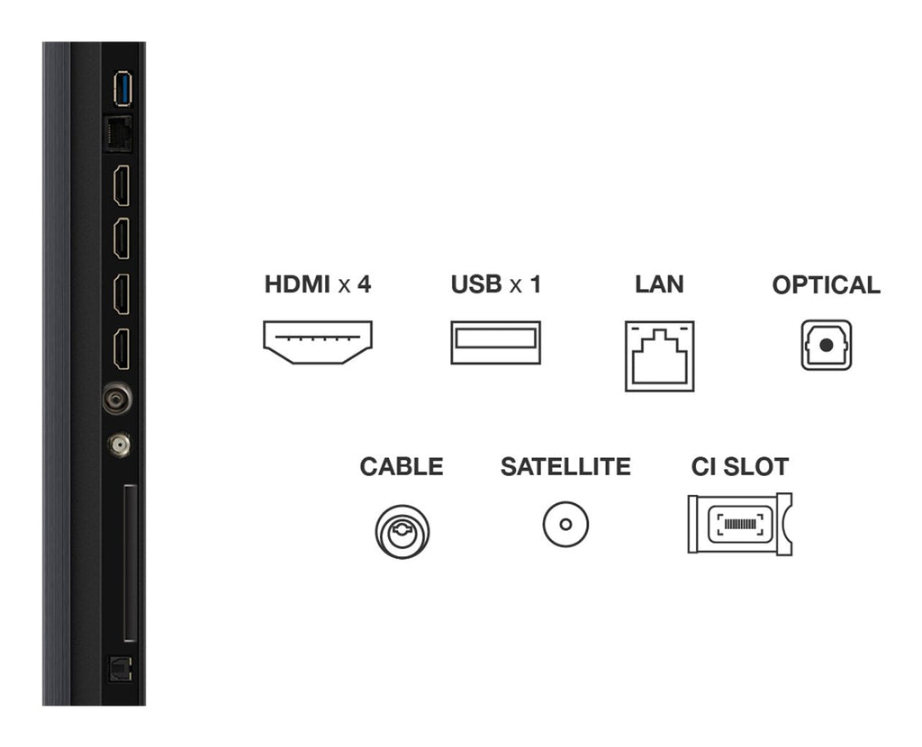 - Tecnología HDR (High Dynamic Range, Alto rango dinámico): Dolby Vision IQ, High Dynamic Range 10 (HDR10), High Dynamic Range 10+ (HDR10 Plus), Hybrid Log-Gamma (HLG)