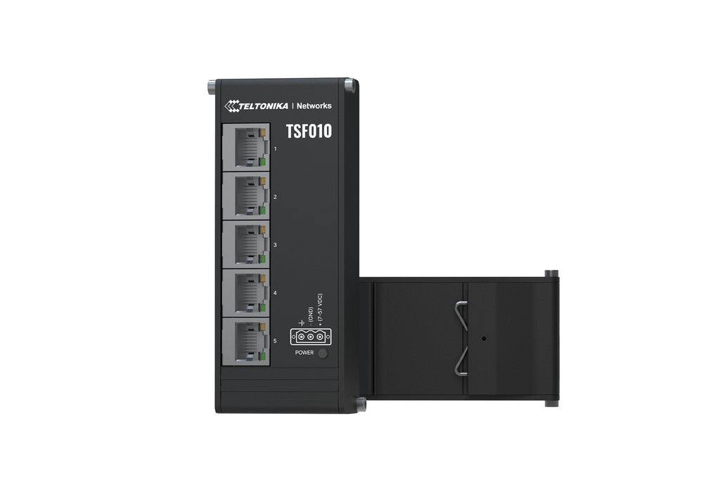 Teltonika NETWORKS TSF010 Flat Ethernet Switch, No administrado, Fast Ethernet (10/100), Bidireccional completo (Full duplex), DIN rail