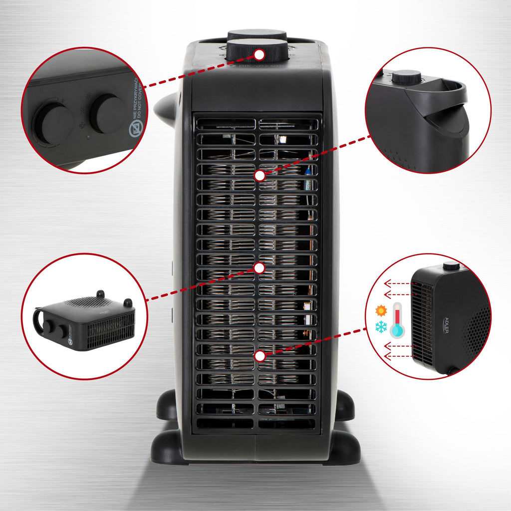 Adler AD 7725B calefactor eléctrico Interior Negro 2000 W Ventilador eléctrico