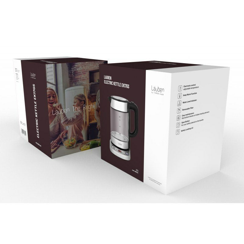 Lauben LBNEK17GS, 1,7 L, 2200 W, Negro, Acero inoxidable, Transparente, Vidrio, Ajustes de termostato, Indicador de nivel de agua