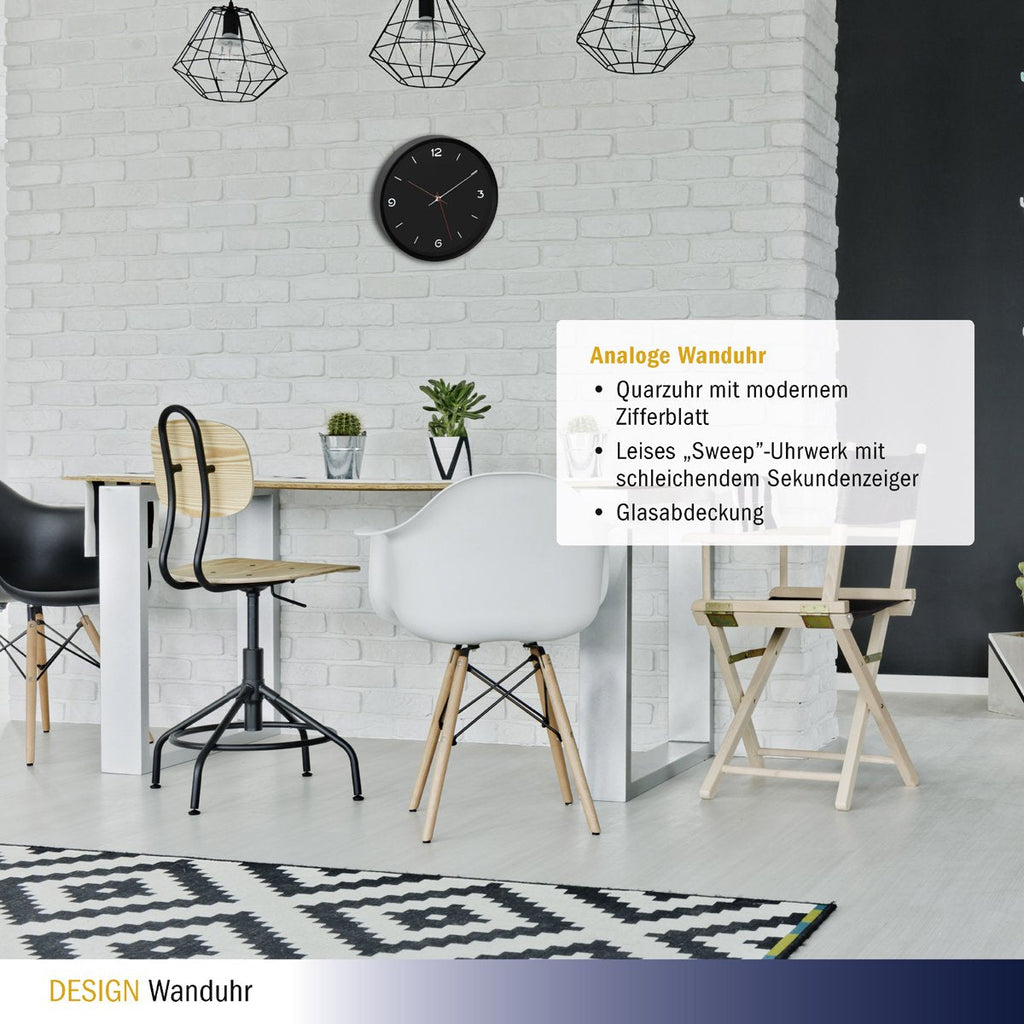 TFA-Dostmann 60.3056.01, Pared, Reloj de cuarzo, Alrededor, Negro, Plástico, Vidrio