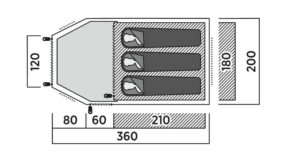 - Grado de impermeabilidad del doble techo de la tienda: 2 m