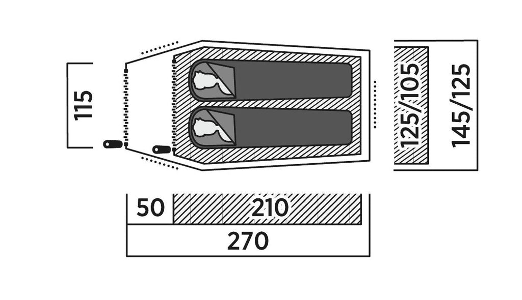- Superficie habitable (W x L): 2100 x 1250 mm