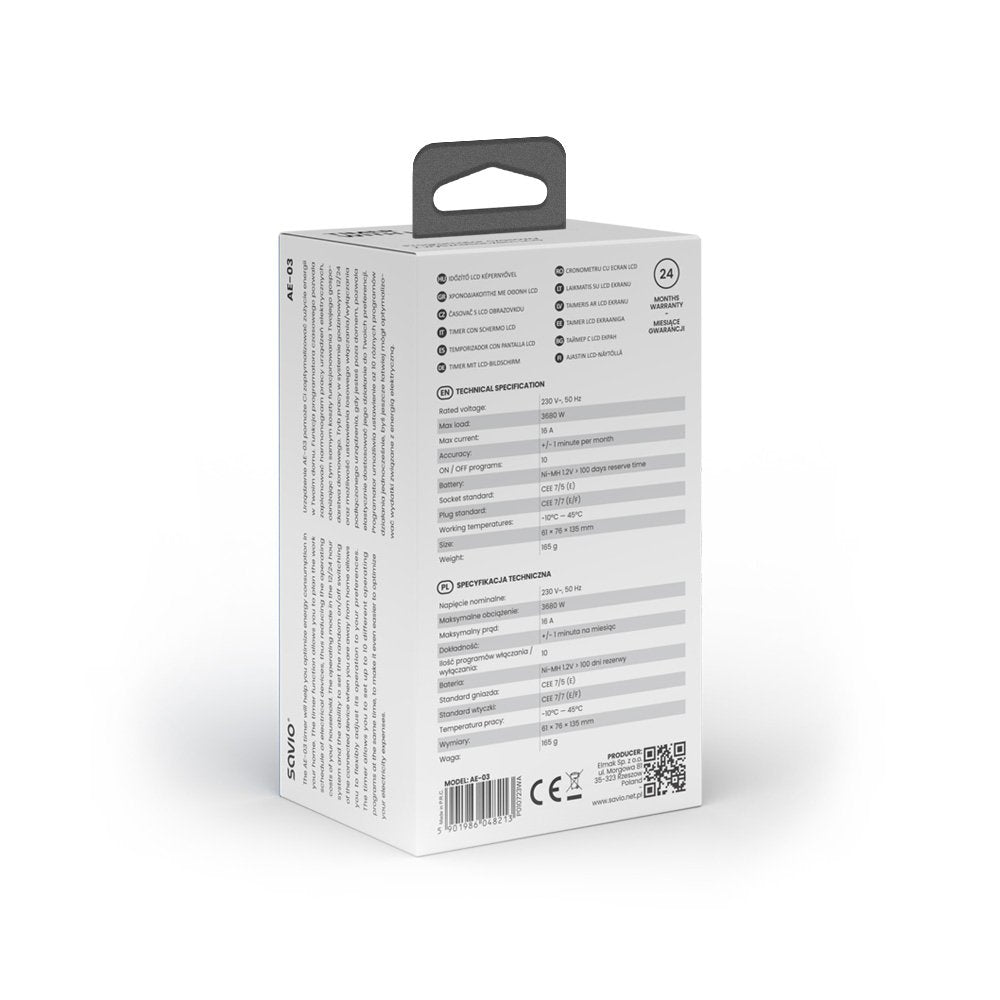 Savio AE-03, Programador eléctrico diario/semanal, Blanco, Digital, LCD, Botones, 230 V