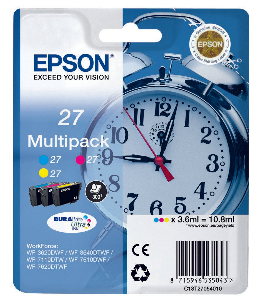 Epson Alarm clock 27 DURABrite Ultra, Cian, Magenta, Amarillo, Tinta a base de pigmentos, 3,6 ml, 1 pieza(s), Multipack