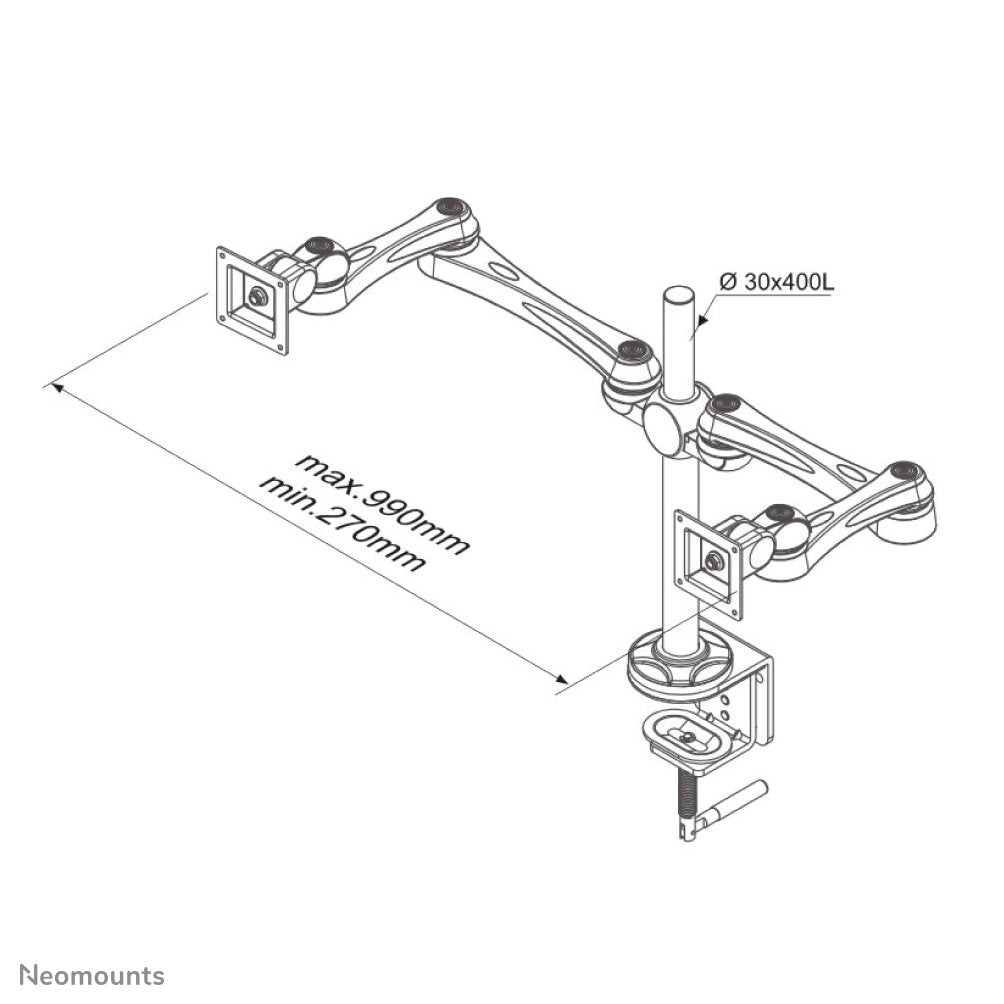 El escritorio Neomounts FPMA-D930D permite conectar 2 pantallas LCD/LED/TFT de hasta 30" (76 cm) en un escritorio.