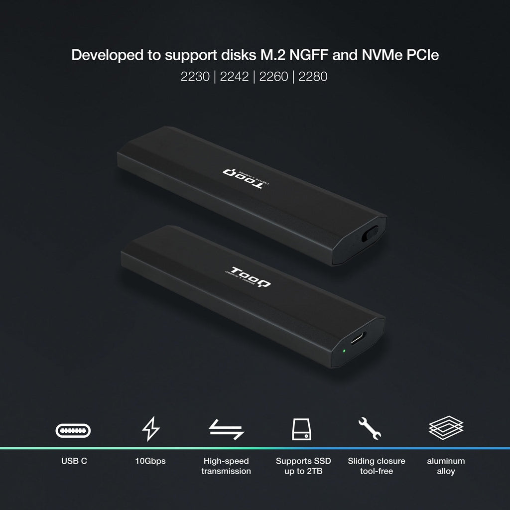 TooQ Shura Caja externa para unidad de estado sólido (SSD) Negro M.2