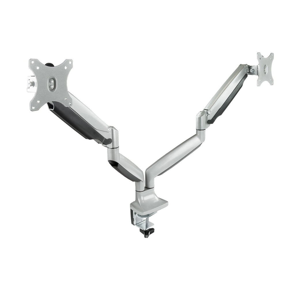 - Soporte de mesa orientable para 2 pantallas (monitor / plasma / LCD / LED) de entre 13" a 32" (depende de la instalación y del espacio disponible) con 3 puntos de giro