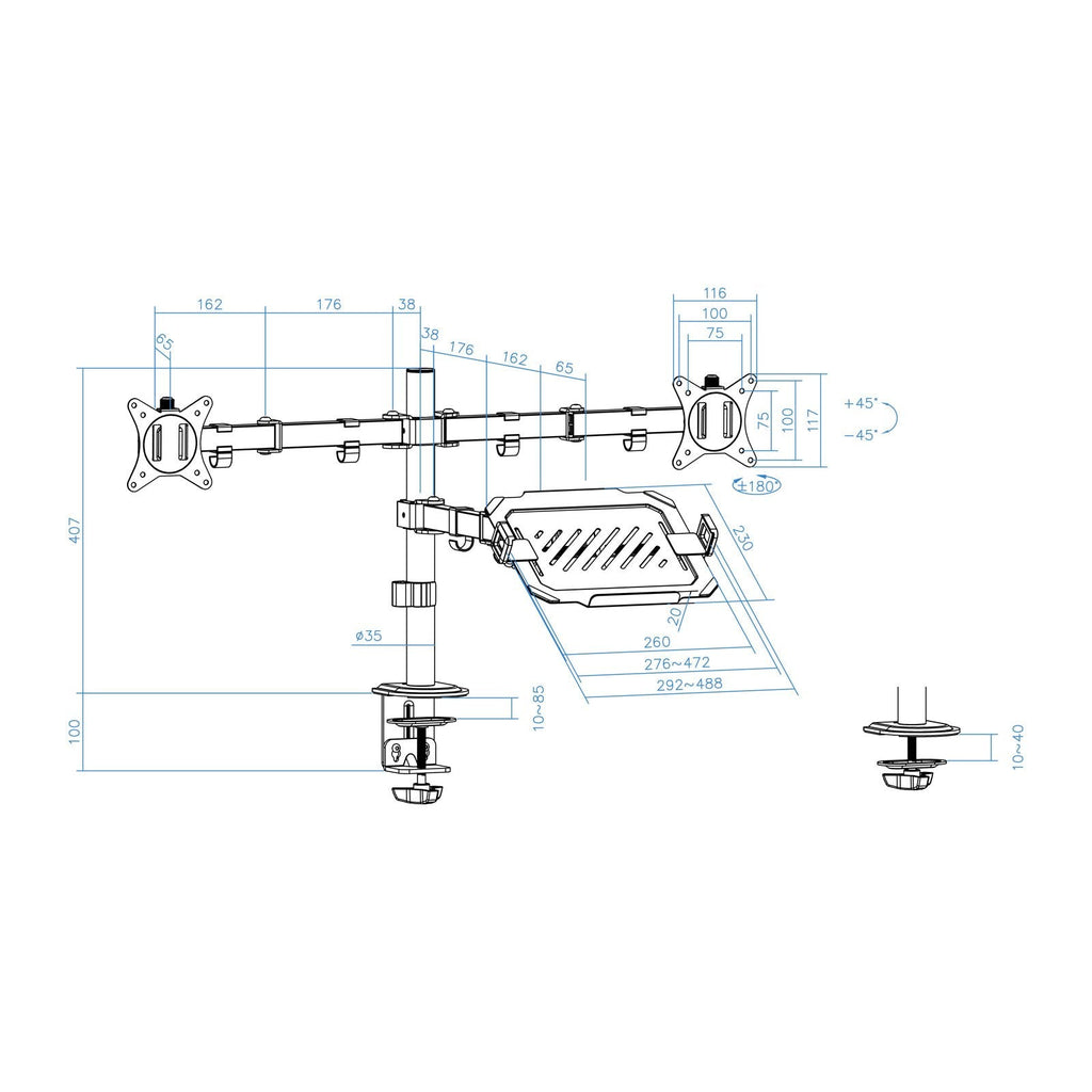 Soporte de Mesa para 2 Pantallas de 17’’-32” y bandeja para Portátil