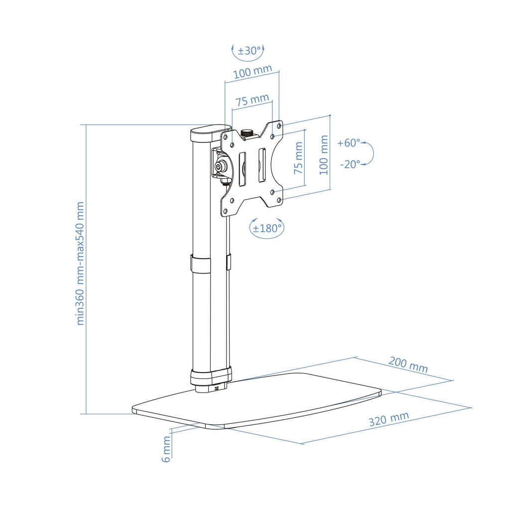 - Rango de ajuste para la altura del soporte: 360-540 mm