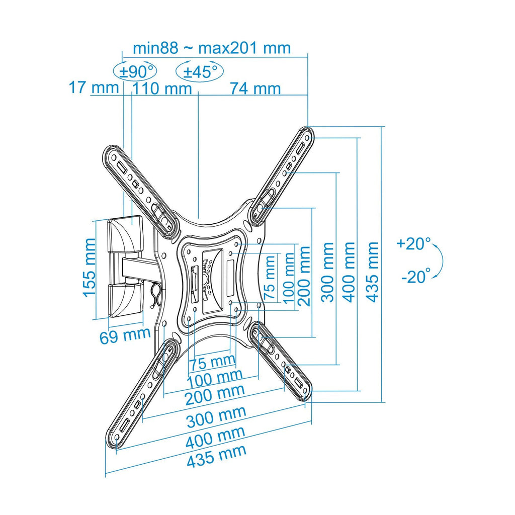 - VESA Máximo: 400x400mm / Compatible con los formatos de fijación de pantalla VESA 75x75mm,100x100mm, 200x100mm, 200x200mm, 400x200mm, 300x300mm y 400x400mm
