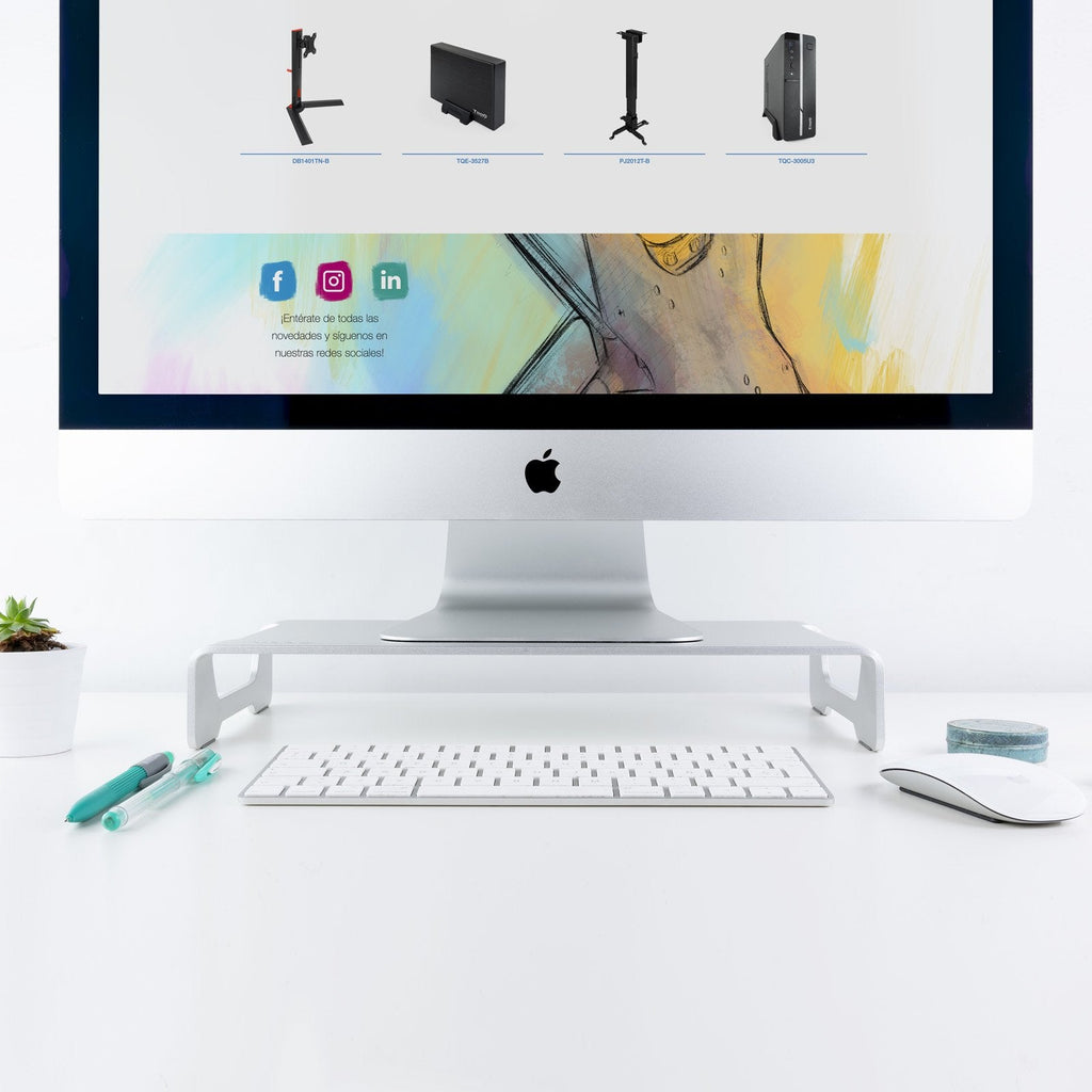- Soporte elegante de gran robustez que se adapta perfectamente al estilo minimalista de iMac y Macbook