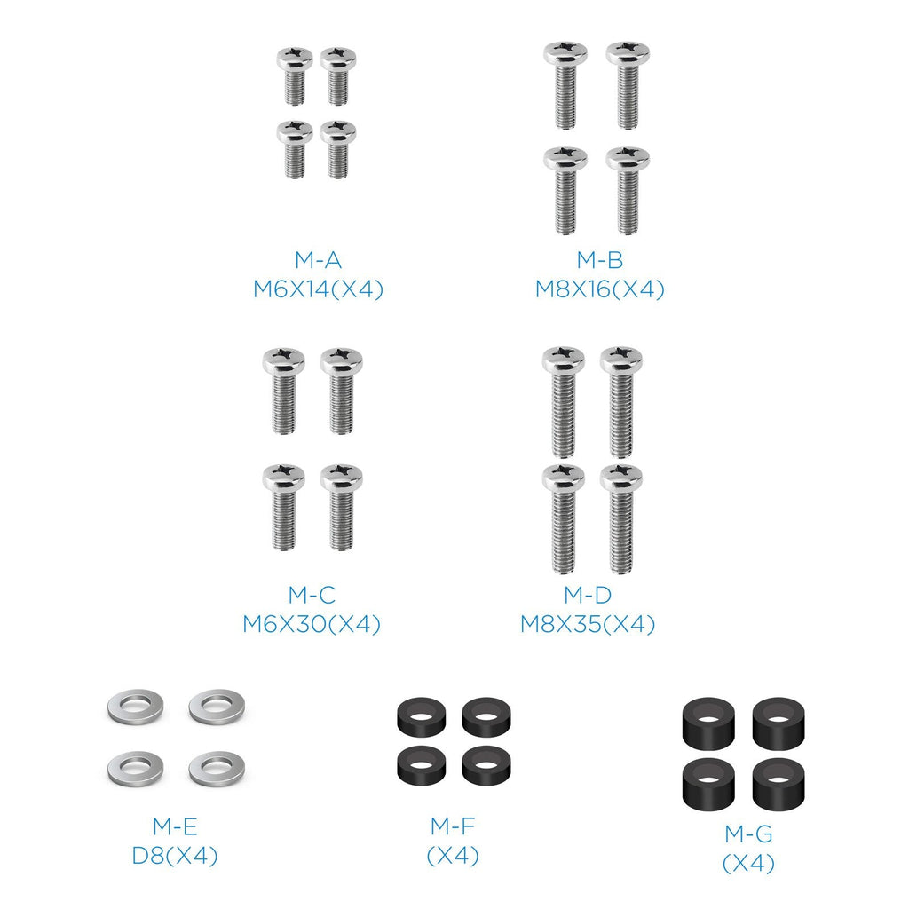- Compatible con VESA: 100x100, 150x100, 100x150, 100x200, 200x100, 150x150, 200x200, 300x200, 400x200, 300x300, 400x300, 400x400