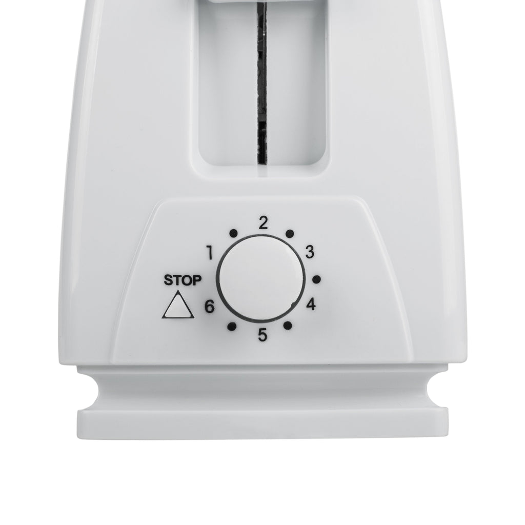Tostadora de 650 W para dos rebanadas de pan.