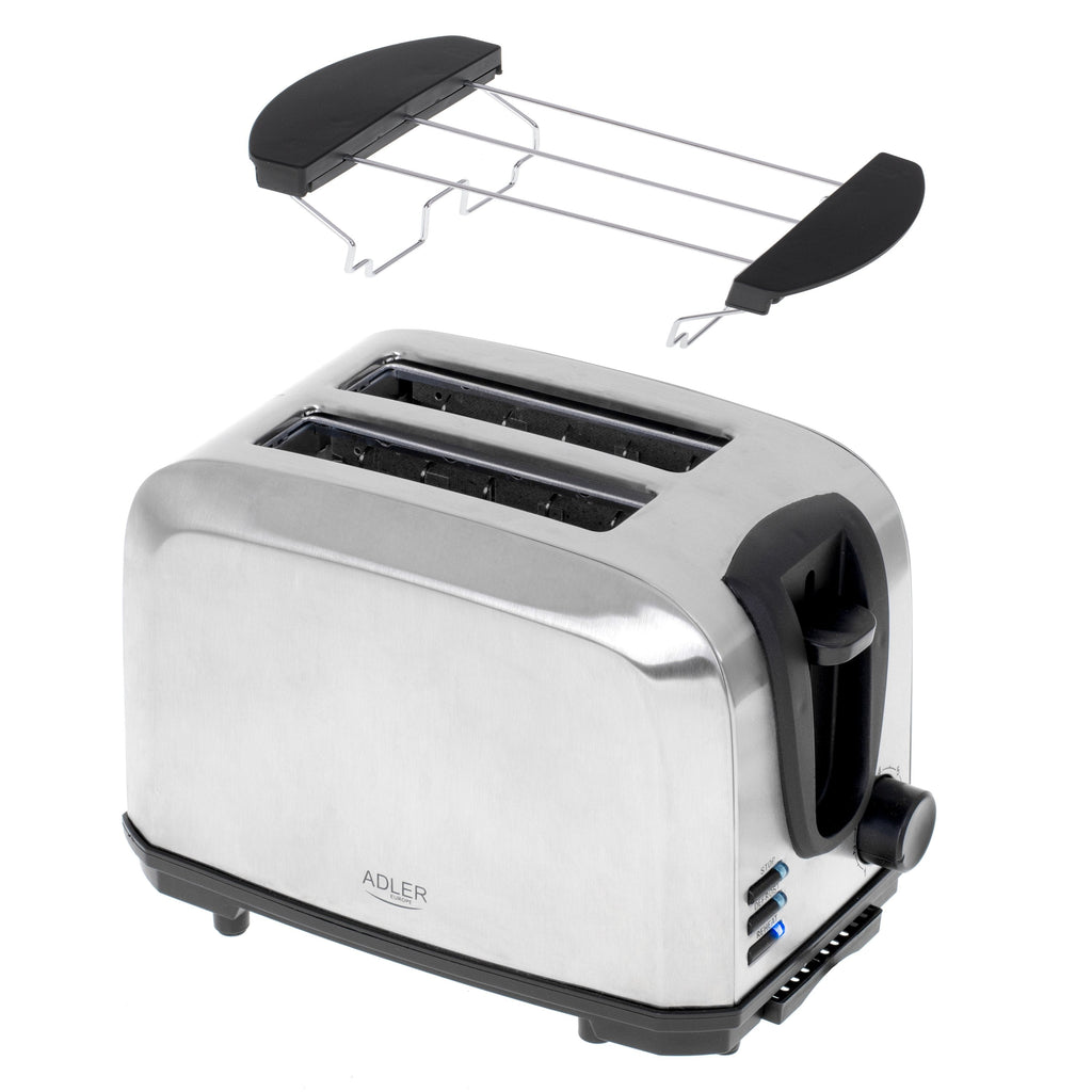 Adler AD 3222, 2 rebanada(s), Plata, Acero inoxidable, Botones, Nivel, Giratorio, 1000 W, 220 - 240 V