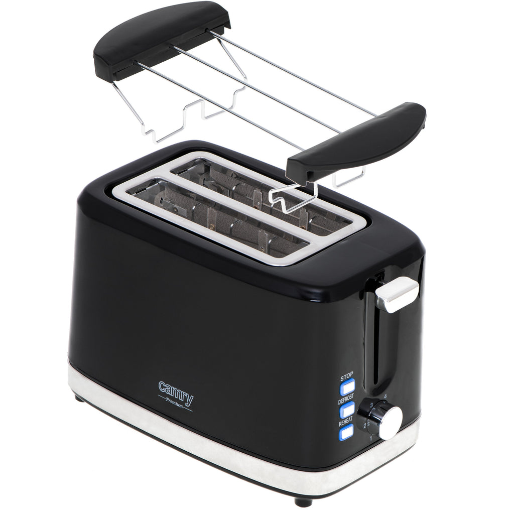 Camry Premium CR 3218, 2 rebanada(s), Negro, Plata, Botones, Giratorio, 900 W, 890 g, 2697 pieza(s)
