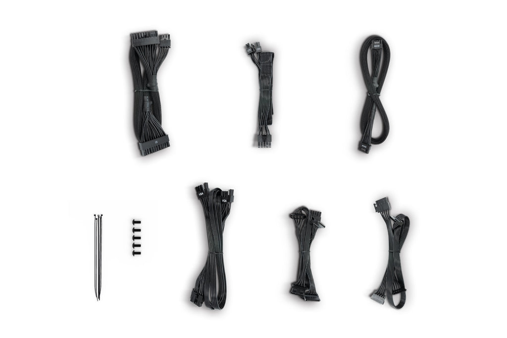 - Cables incluidos: Corriente alterna, CPU, PCIe, Peripheral (Molex), SATA