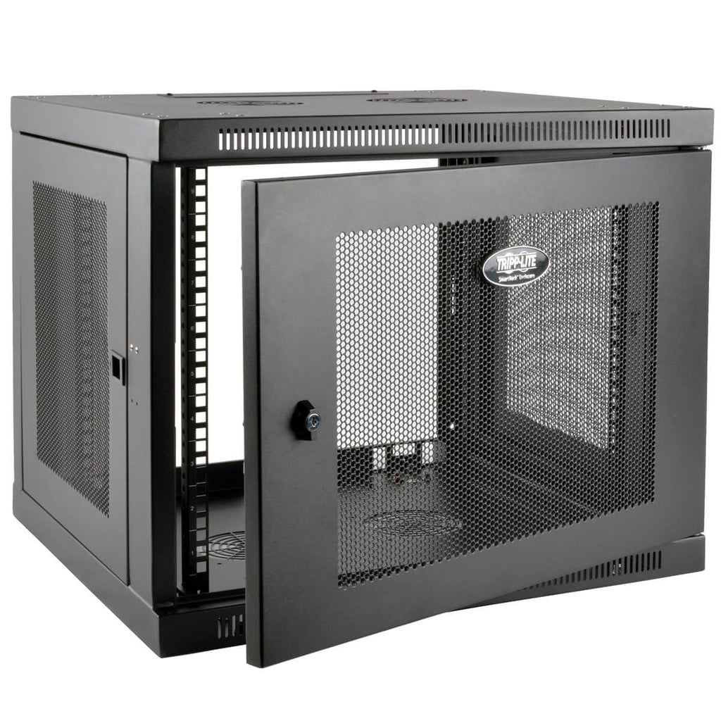 El SRW9UDP viene totalmente ensamblado y listo para su instalacion en la pared, o utilice el juego de ruedas opcional SRCASTER de Tripp Lite para convertirlo en un rack movil. Los orificios de instalacion cuadrados y roscados 12-24 y los espacios de rack numerados hacen que la instalacion del equipo sea sencilla. Los rieles de instalacion verticales se ajustan en incrementos de 7/8"" para alojar el equipo a una profundidad de hasta 52 cm [20.5""], como switches de red y paneles de conexiones.