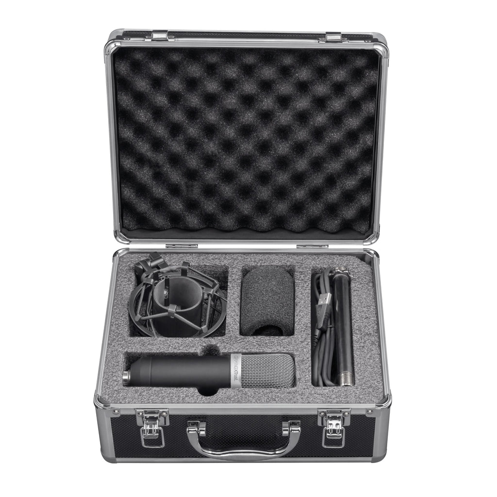 Gracias al resistente estuche de viaje de aluminio, el estudio de grabación se desplaza con usted. Llévese el micrófono cuando viaje; el estuche le permitirá guardarlo con seguridad durante el transporte.
