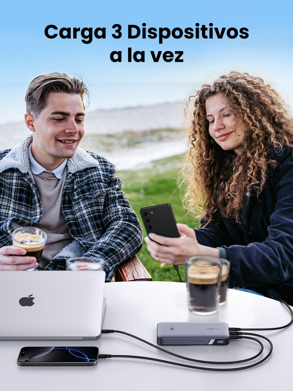 [Grande capacidade de 20000 mAh] Com a bateria externa UGREEN de 20 000 mAh, pode usar o MacBook Pro de 14" até 1,3 vezes, o Galaxy S24 Ultra até 3,0 vezes e o iPhone 15 Pro até 4,5 vezes para se manter siempre en movimiento. .
