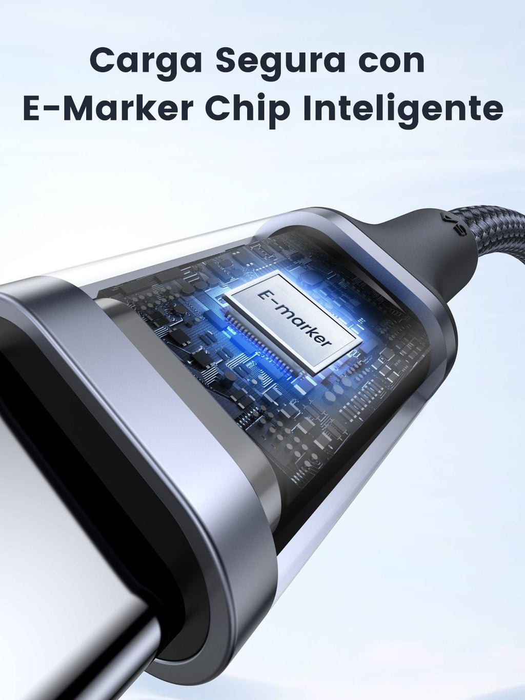 [Seguro e confiável] O cabo USB tipo C da UGREEN adota o chip inteligente E-Marker, identifica e fornece automaticamente a corrente necessária do dispositivo, evita danos durante o carregamento.