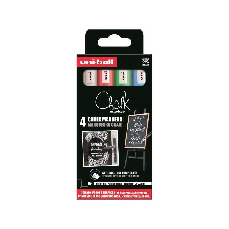 Uni-Ball Pwe-5m Pack De 4 Marcadores De Tiza Liquida - Punta Conica 1.8-2.5mm - Borrado En Humedo - Resistente A La