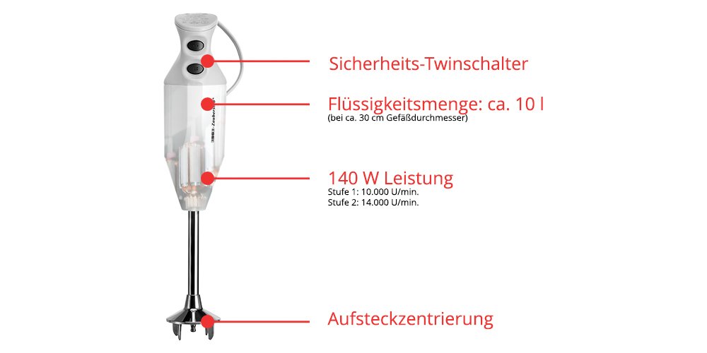 ESGE M 122 S, Batidora de inmersión, 0,6 L, 1,6 m, 140 W, Blanco