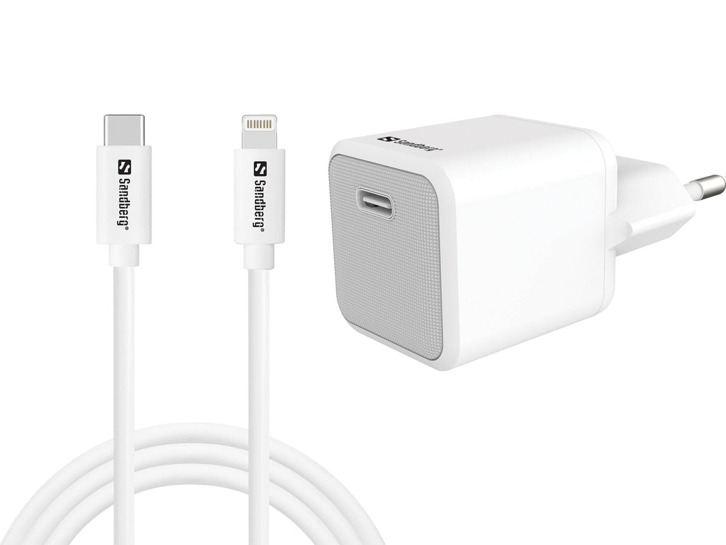 Sandberg USB-C AC Charger + Lightning 1M es un práctico cargador para enchufes. Está equipado con una salida PD USB-C de 20 W, para que puedas cargar smartphones y tablets a toda velocidad