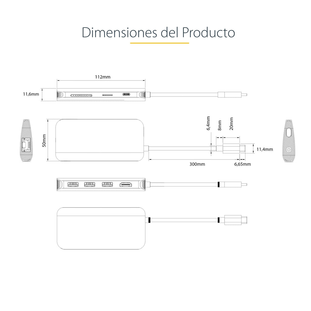 Este adaptador multipuerto USB-C™ con modo DP 1.4 Alt es compatible con HDMI® a 4K 60Hz (HDR) y convierte su MacBook, Dell XPS u otro portátil o tableta USB-C en una estación de trabajo, allá donde vaya. El adaptador multipuerto USB Type-C™ cuenta con una salida de vídeo HDMI 4K, tres puertos USB 3.2 Gen 1 Tipo-A (5Gbps), lectores de tarjetas SD y MicroSD y un puerto Gigabit Ethernet, todo ello a través de una conexión al puerto USB-C, USB4 o Thunderbolt 3/4™ de su portátil. Además, ofrece carga avanzada y flexibilidad a través de un puerto compartido USB-C Power Delivery 3.0 y de datos que puede utilizarse para conectar periféricos, con velocidades de transferencia USB 2.0 (480Mbps), cuando no hay una fuente de alimentación conectada. El adaptador multipuerto cuenta con un cable anfitrión extra largo de 30cm - para un mayor alcance, para ofrecer más flexibilidad de configuración.