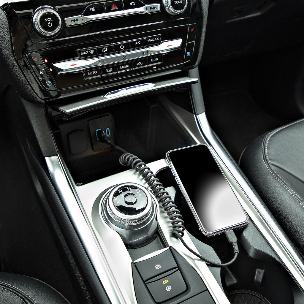 - CABLE USB-C A LIGHTNING: El cable rizado se estira hasta 50cm y se contrae hasta 32cm, lo que evita que se enrede y estorbe. La cubierta de TPE hace que sea fácil de enrollar y guardar en la consola del vehículo o en la guantera